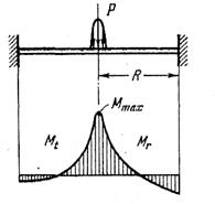 Как видим, в центре изгибающие моменты обращаются в бесконечность, что является следствием того, что здесь обращается в бесконечность поперечная сила. В центре, таким образом, имеет место, как говорят, неустранимая особенность. В реальных условиях сосредоточенных в точке сил не существует – это лишь схема.