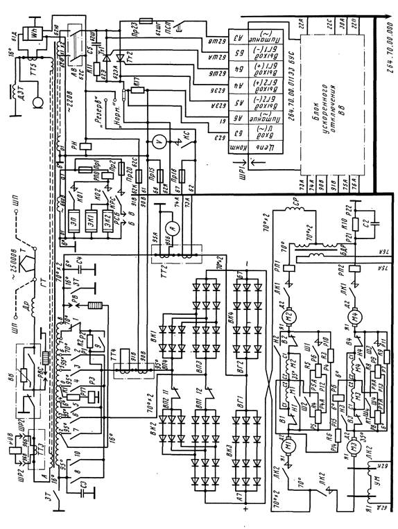 Рис.1. Схема силовых электрических цепей моторного вагона ЭР9Е