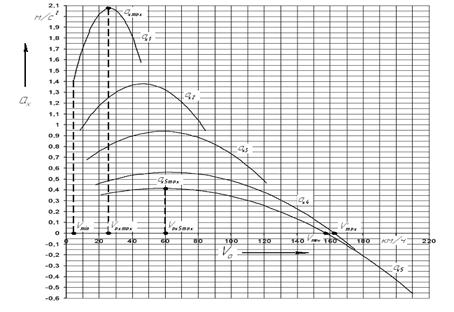 Последующие расчеты ведем аналогично. Результаты расчетов заносим в таблицу 7.1. Полученные значения наносим на график ускорений автомобиля.